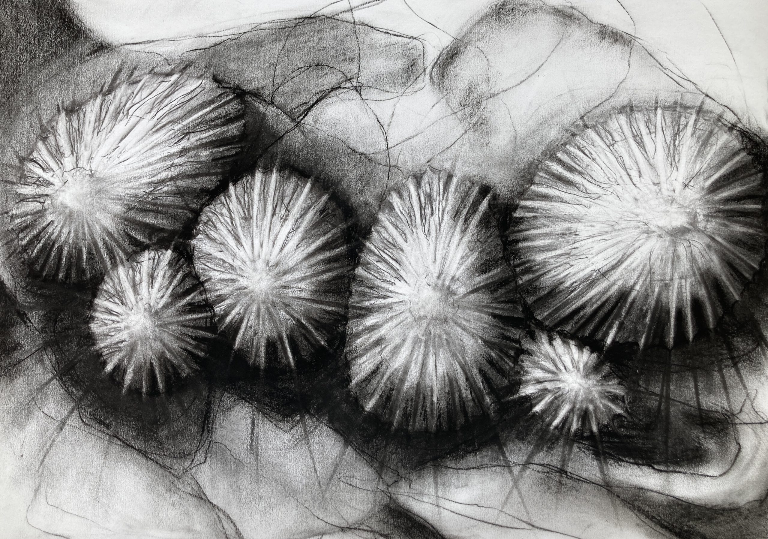 I can often be found balanced on a rock somewhere with my sketch book, and although I have yet to work out how to sketch whilst swimming, and have had limited success from my kayak, the movement and point of view from the water is vital to my practice.