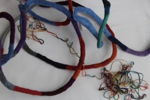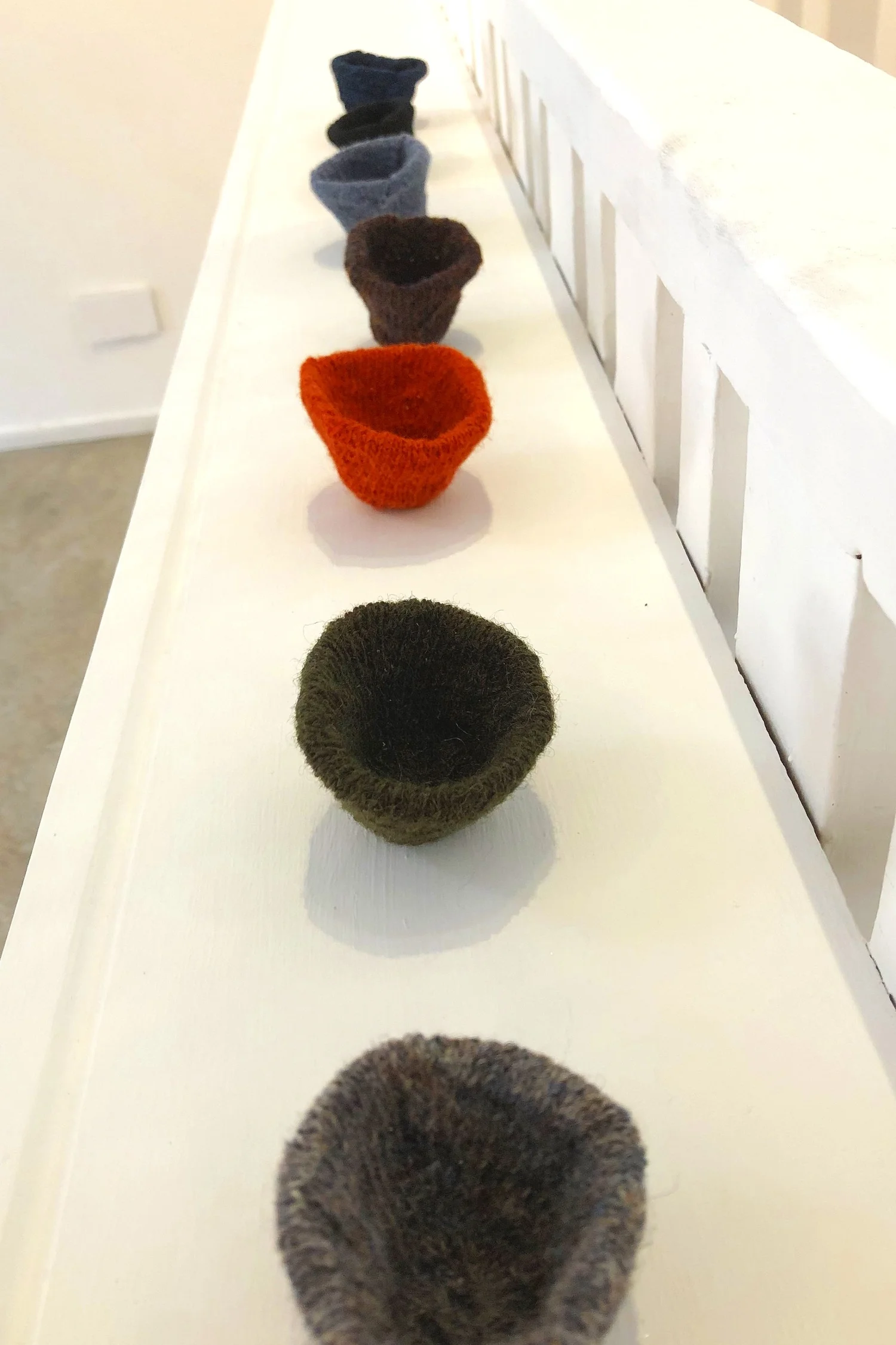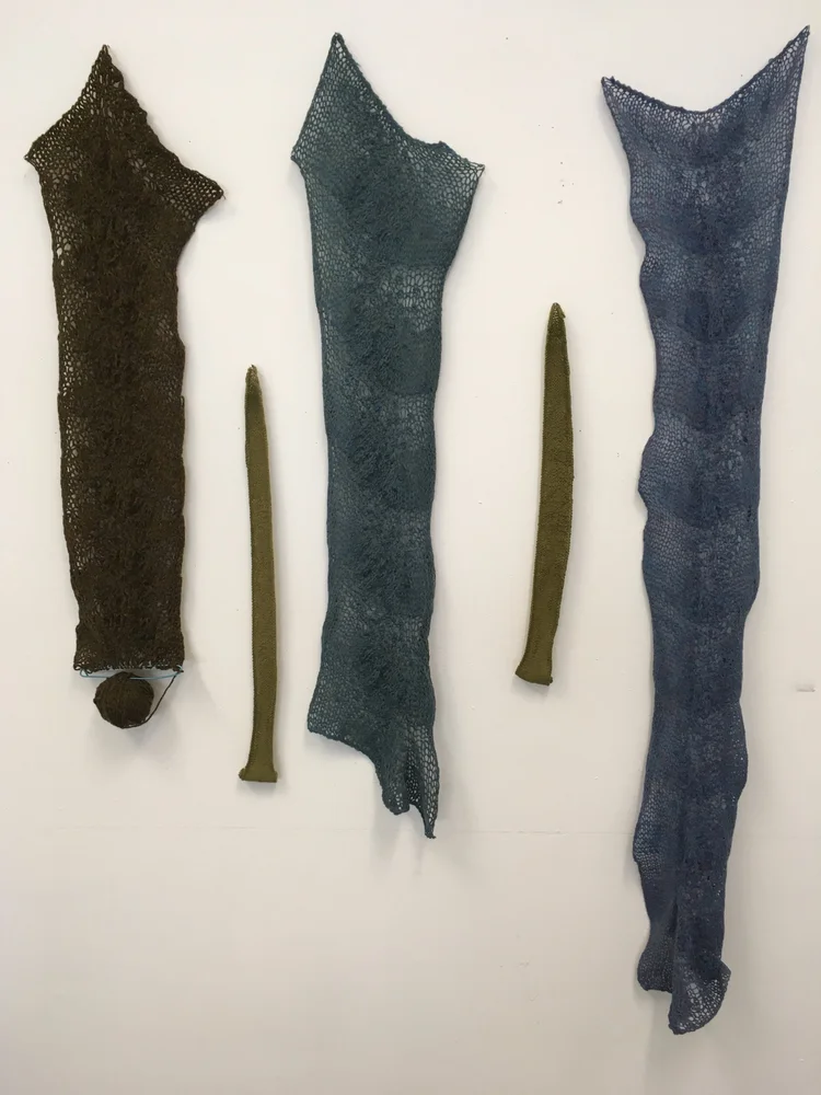 I have been exploring my family genealogy. Through my Gaelic ‘Slaoinadh’ (Patronymics) I have tried to find ways to communicate these sounds visually. From Gaelic sound recordings I have made sound wave images. This work led me to create a code connecting knitting stitches to the Gaelic alphabet. From these I have created several knitted works representing genealogy visually. Texture and colour are an important feature in my work. The textural qualities and sensory aspect of the work connect to traditional local materials. .