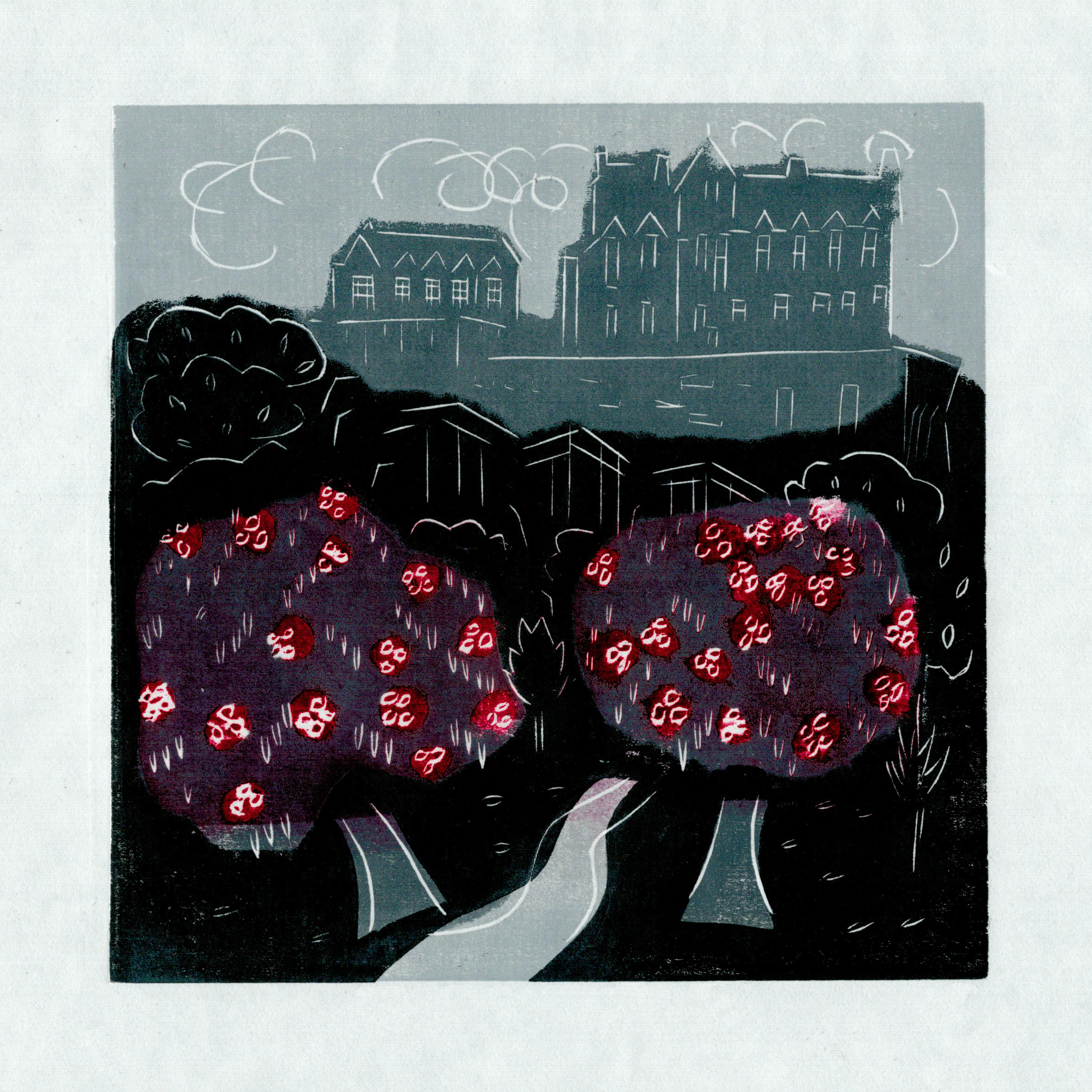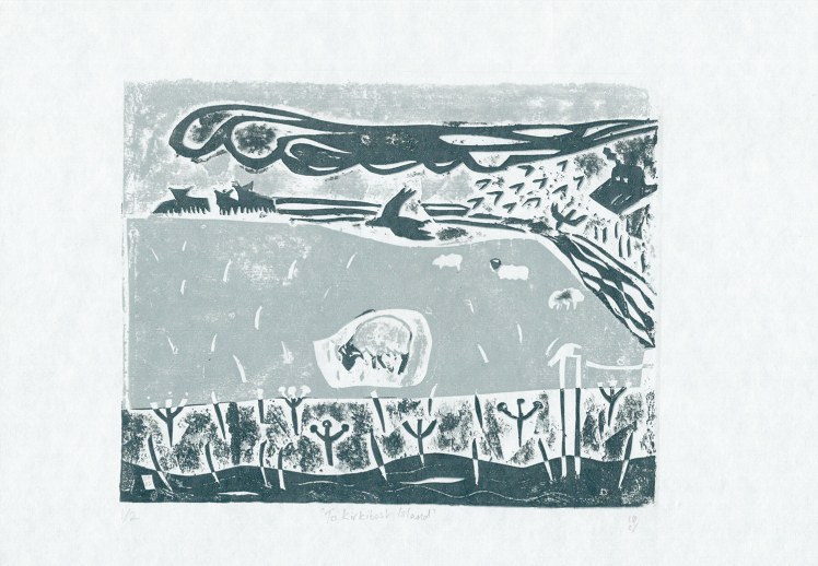 ’My method involves using a relief process by cutting into card or wood and often incorporates paper masking to create areas of colour or tone. After moving to the Outer Hebrides from Cornwall in 2023, my latest works depict cosy cottages and stormy skies, alongside the rich wildlife that can be found on the islands.’