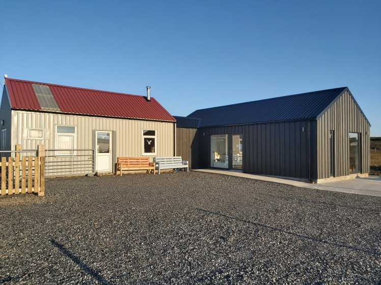 Shoreline Stoneware Gallery is adjacent to the kiln-shed, just 3/4 of a mile along Locheport Road, with clear road signs from Clachan and Locheport road-end. Ample parking and turning at the Gallery.