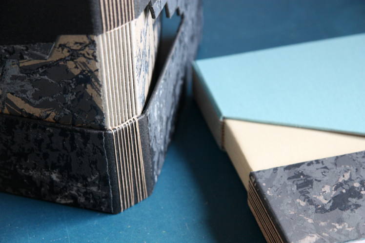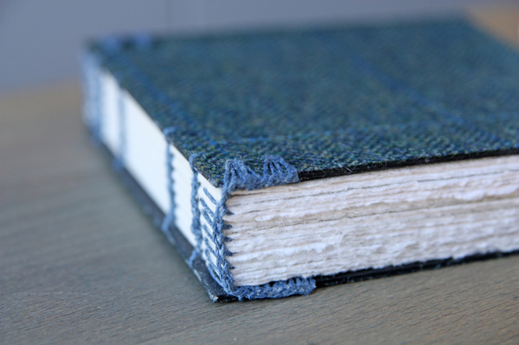I also love working with Harris tweed and leather. Here I work with different book structures like long stitch journals, cross structures and coptic books with handsewn headbands.
