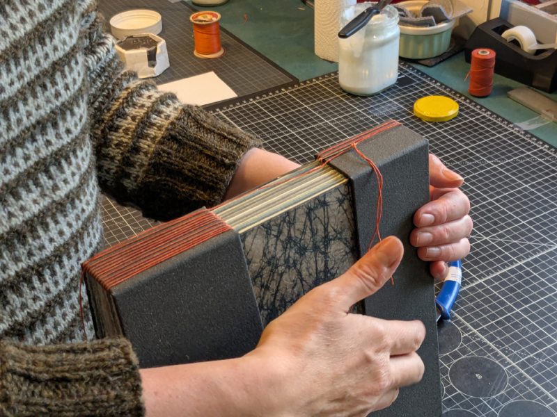 Please also get in touch if you want to learn to make a book, I am very happy to show you during a workshop in my studio. Or if you want to try out binding a book in your own time and space, my book kit might just be ideal for you. You find them on my website, at Taigh Chearsabhagh or during your visit to my studio.