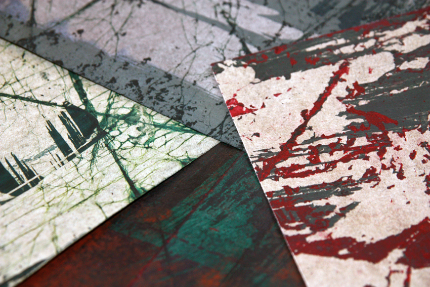 My books and boxes are made employing traditional bookbinding techniques which I love adhering to closely. I do however also want to give my work its very own style and feel. I hand craft the decorative paper I use to cover the objects I make. It is effectively a paper batik. Many layers of ink, dyes and wax ensure a rich and deep texture which at times is evocative of sea, sand and rock patterns and at other times a mere aesthetic expression. The wax is ironed out at the end of the process leaving the paper with a very tactile quality to it. This makes my books and boxes attractive and sturdy at the same time.